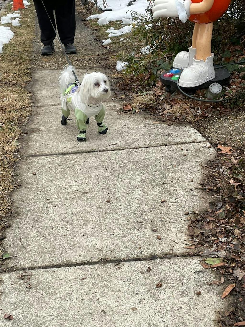 Was great - kept my small white dog from getting soiled in the big snow storm, She liked it but the feel need rigid padding at the bottom of each foot.
